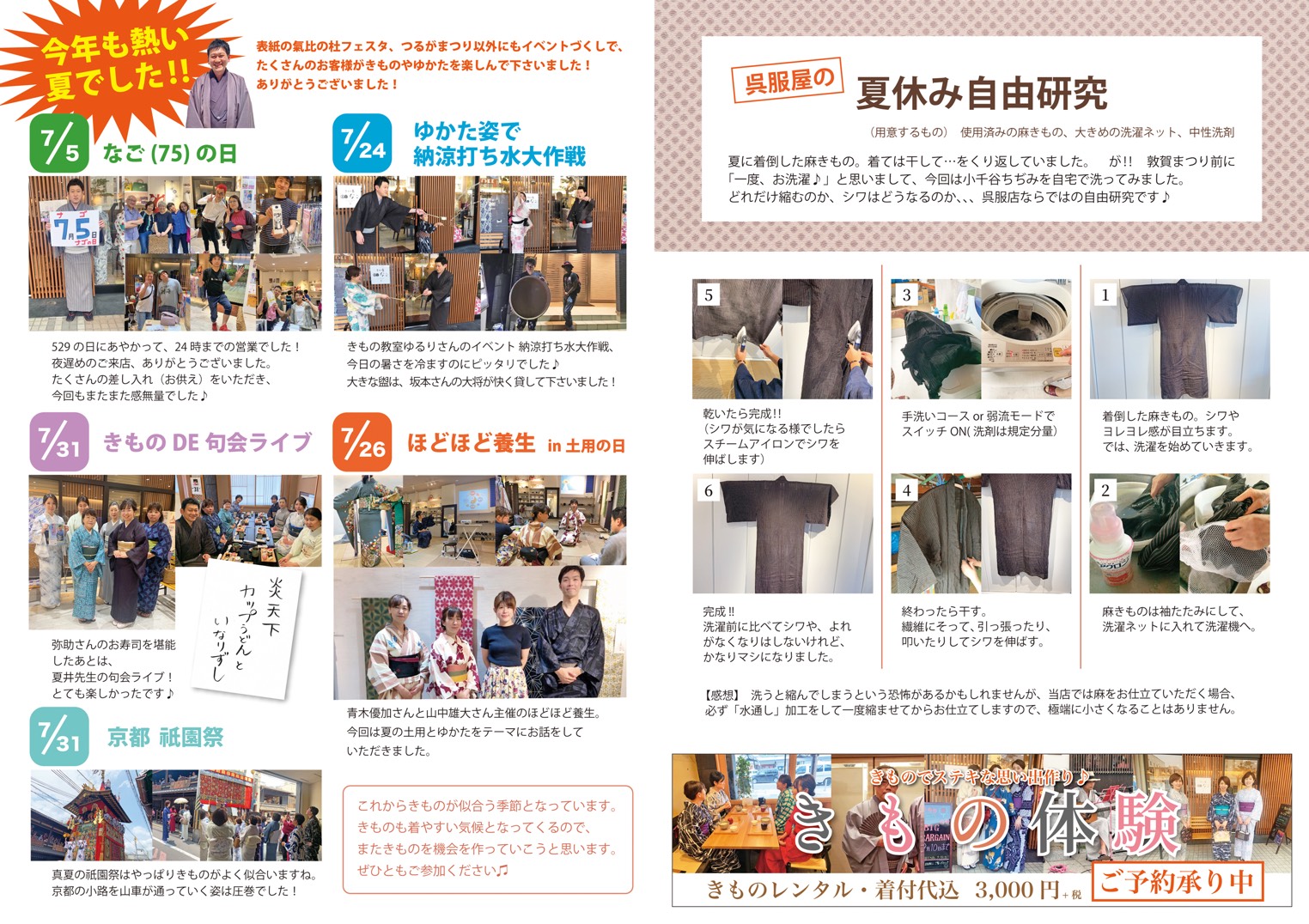 暑中お見舞い申し上げます。今年も3月4月に1回暑くなり5月は比較的涼しかったものの、6月から猛暑日になったり、年々季節の変わり目が昔からの暦通りにはいかなくなりましたね。 6月と9月は単衣を盛夏は夏物をそれ以外は袷をといったきものカレンダーは、受け継がれた文化としては大切ですが、今は身体を大切に体感…