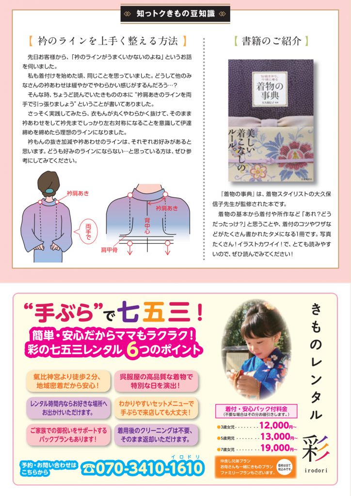 当店でも、七五三や振袖前撮りのお手伝いが増えてきました。家族のお祝い、節目にきものを着てくださる方からお話をいただけること、大変うれしく思います。