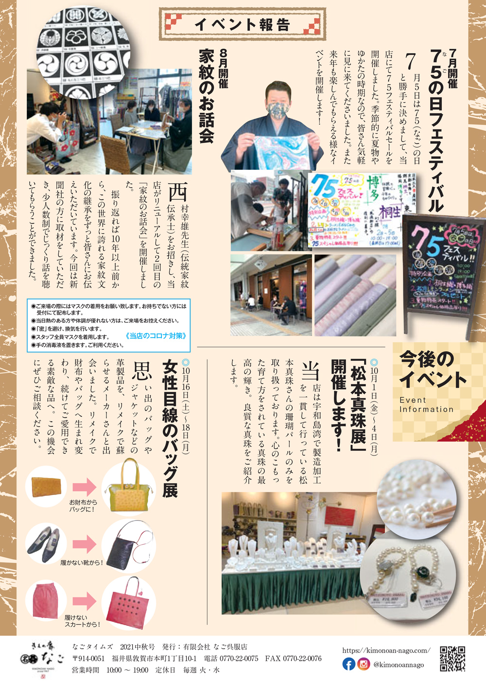 単衣の季節に入り、本来ならこの秋から冬はきものを着るイベントが多い時期ですね。