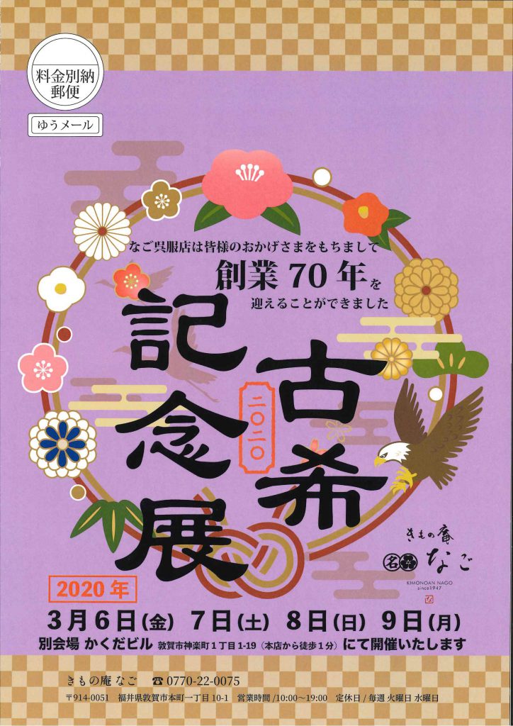 おかげさまで、今年2020年は当店にとりまして70周年という節目の年になります😊開催が危ぶまれましたが予定通り開催致します❗️ 今年をまた新たなスタートという気持ちで商売に励みたいと思います😊今後ともよろしくお願いします❗️ 皆様のご来場おまちしてますー😊😊