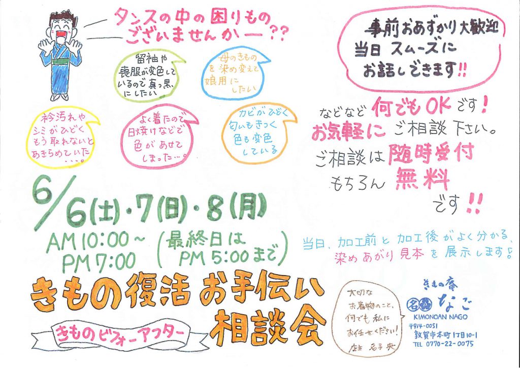 6月6日~8日 きもの復活お手伝い相談会