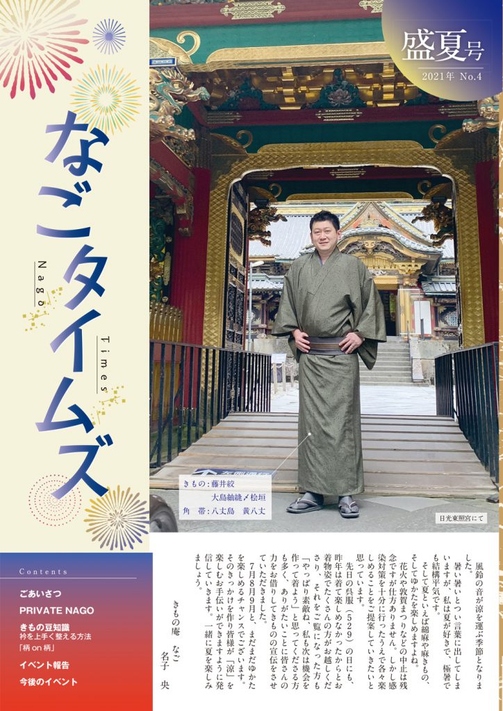 風鈴の音が涼を運ぶ季節となりました。 暑い暑いとつい言葉に出してしまいますが、私は夏が好きで、極暑でも結構平気です。 そして夏といえば綿麻や麻きもの、そしてゆかたを楽しめますよね。 花火や敦賀まつりなどの中止は残念ですが仕方ありません。しかし感染対策を十分に行ったうえで各々楽しめることをご提案してい…