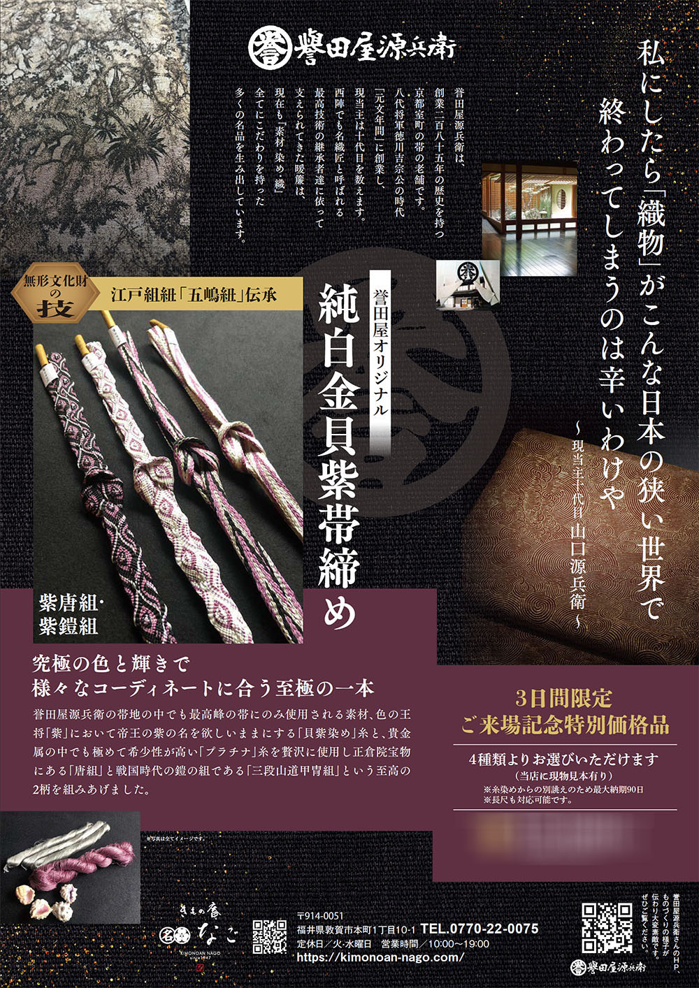 呉服業界のみならず、演劇・芸能の世界からも常に注目を浴び続ける誉田屋源兵衛さんの作品。