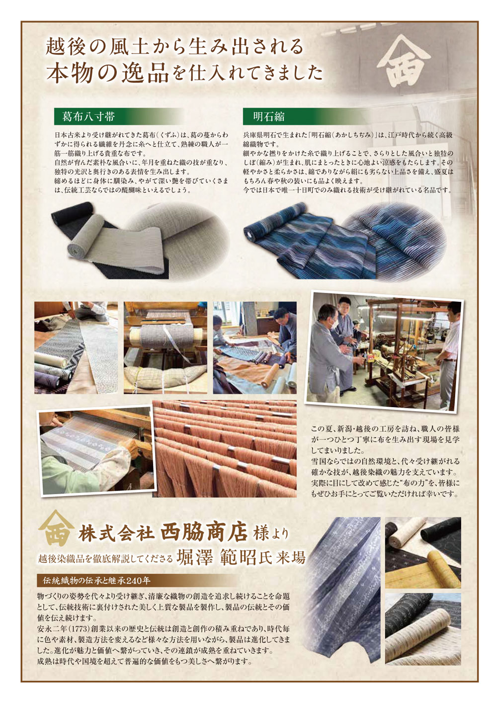 この佳き日にあわせ、当店では【越後染織特集】を開催いたします。