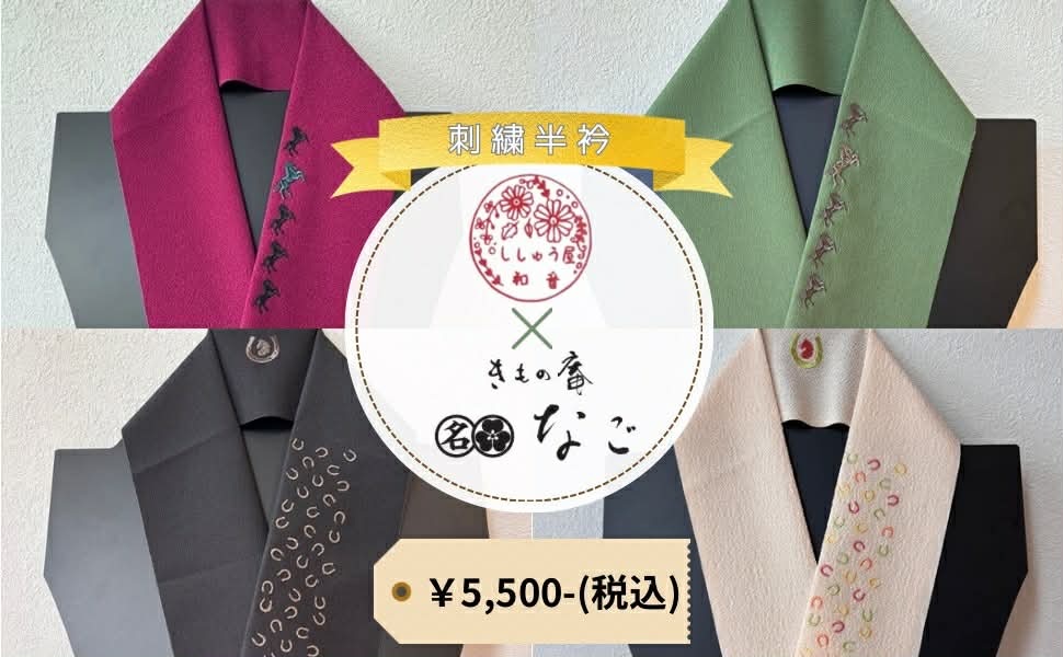 午年にちなんだオリジナル刺繍衿、ホースシュー衿を作りました。